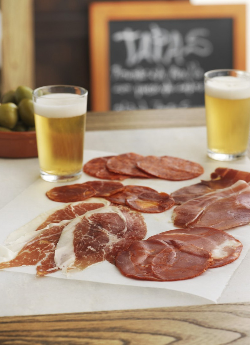 The Spanish like nothing better than to nibble on a slice of jamón or sausage while they enjoy a glass of beer, wine or sherry.