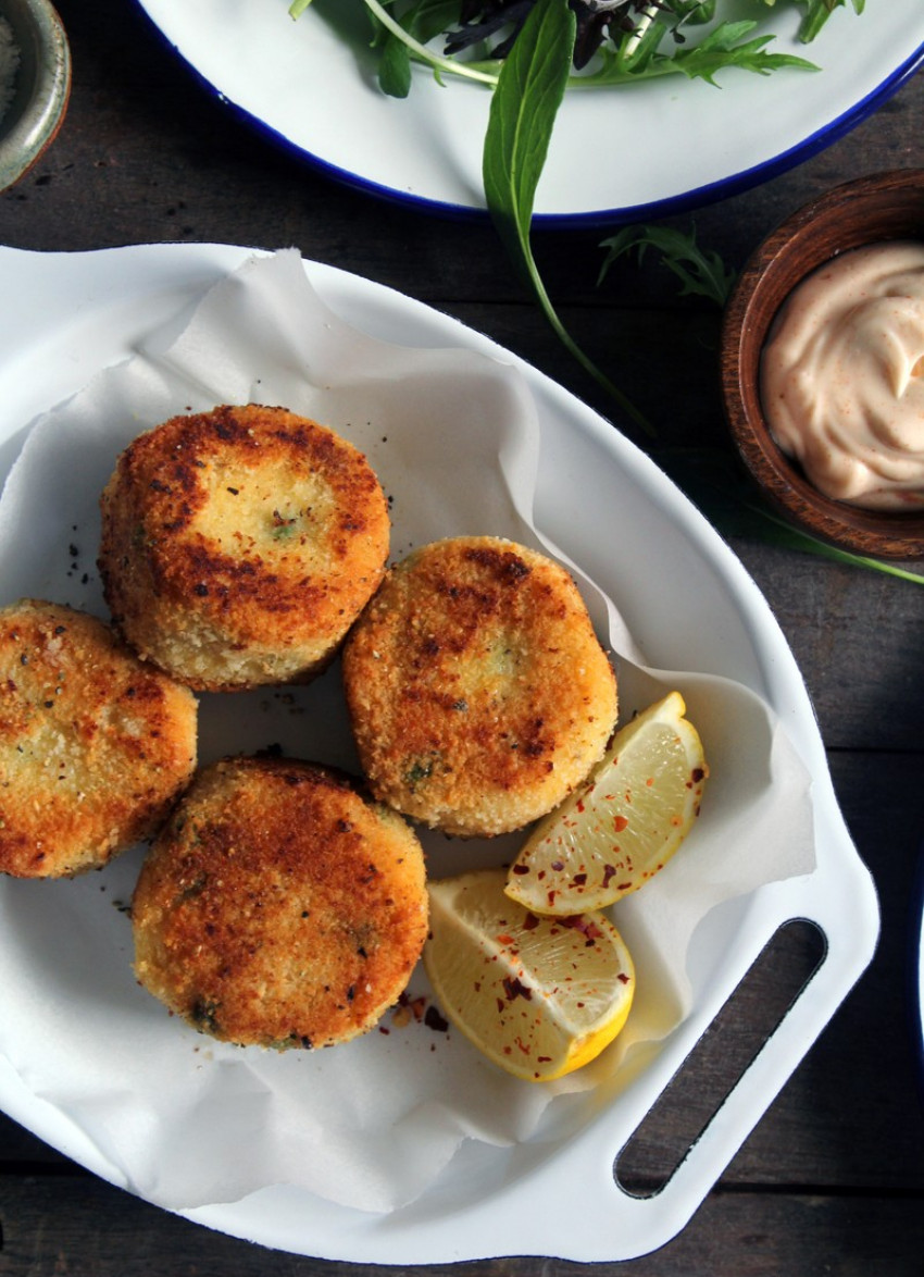 Use wet hands to form medium sized cakes. Place in the fridge for 30-60 minutes to firm up.