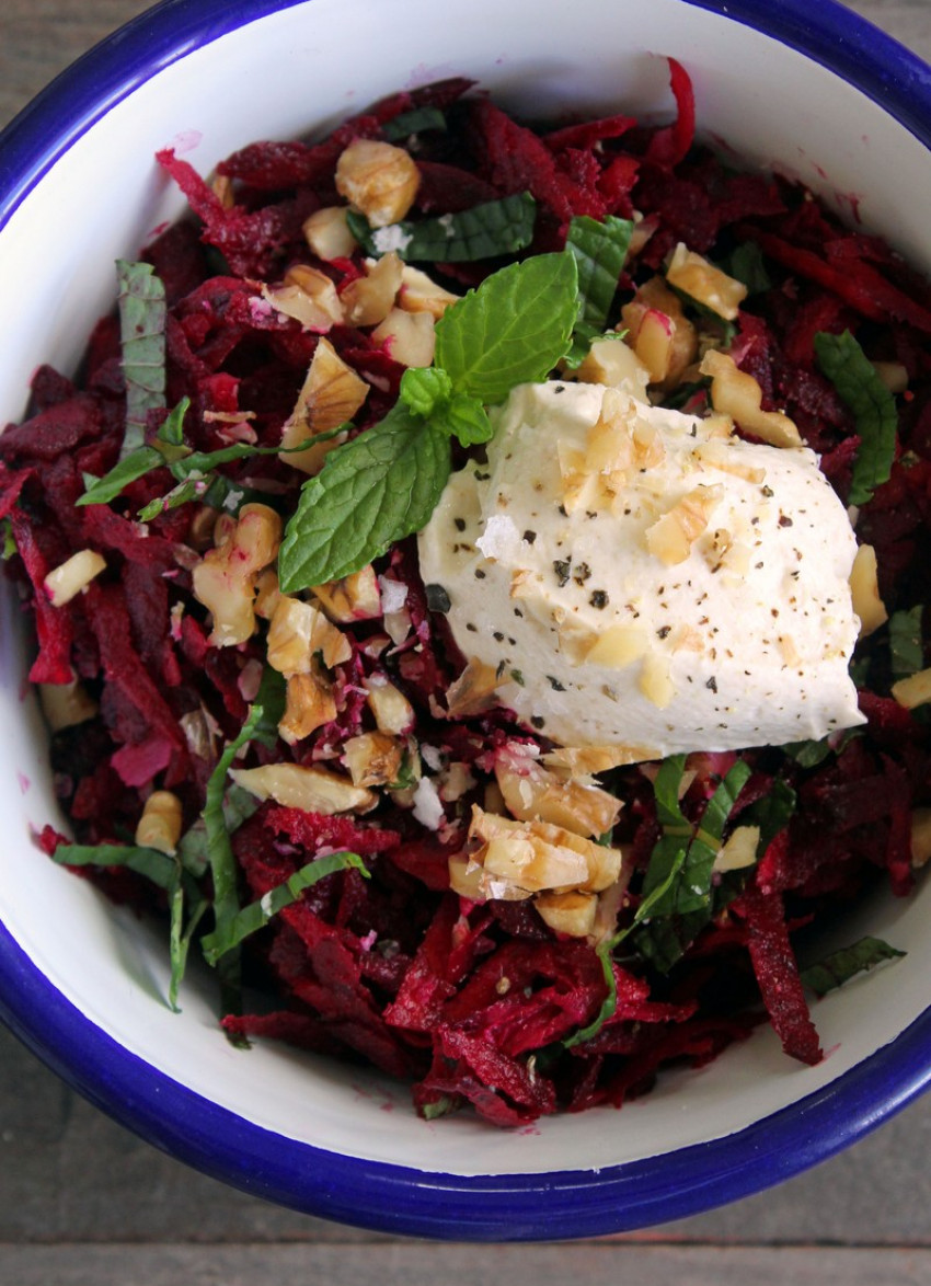 Raw Beetroot, Walnut and Mint Salad with Cumin Labne