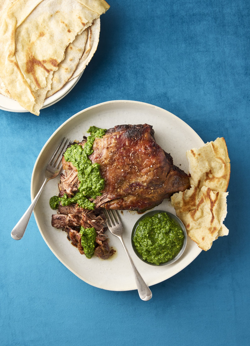 Slow-roast lamb is one of my go-to entertaining recipes, and this one, with its fresh and spicy relish, is especially popular!