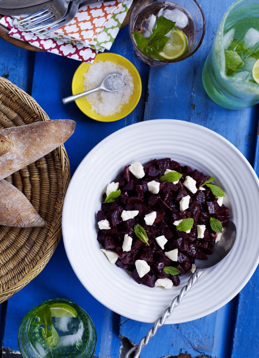To serve: Place the salsa on a serving plate and top with the feta and mint. Makes about 2 cups