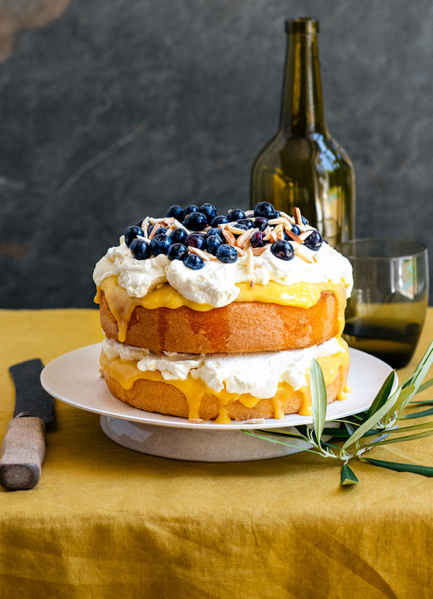 Store-bought Sponge with Lemon Curd, Blueberries and Almonds