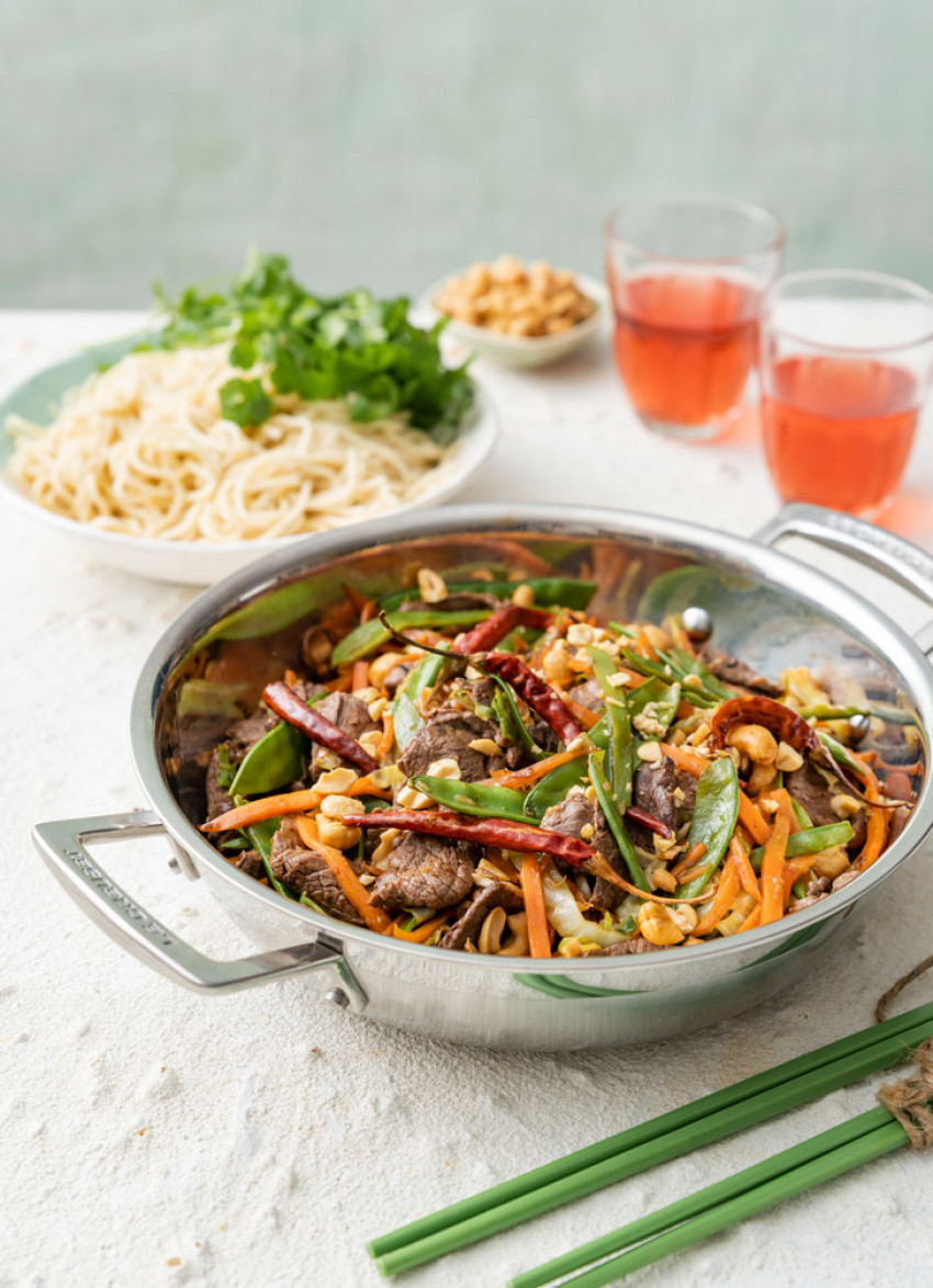 Once the slicing is done, a stir-fry is a very quick meal to put together. It’s important to keep the wok very hot otherwise the meat will start to stew in its juices and will be tough.