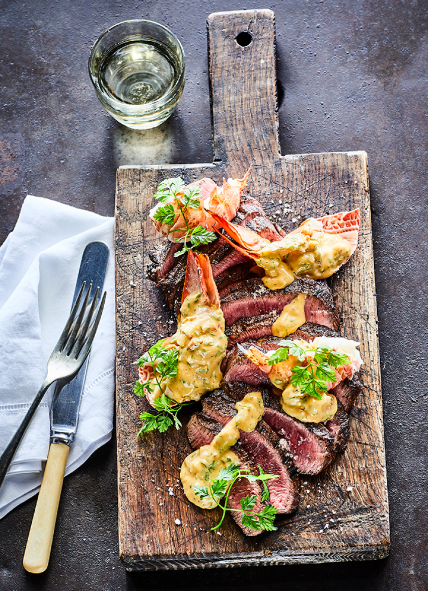 Christmas is such a special time of year and I love to mark it by cooking up something special – this next-level surf ‘n’ turf fits the bill. Crayfish are one of the stars of our world-class Kiwi kaimoana so it makes for a fantastic celebratory meal. I like to show such a delicacy respect by using it all up – the shells give the béarnaise sauce a full-bodied flavour. Served with a juicy steak it’s a winner of a dish.