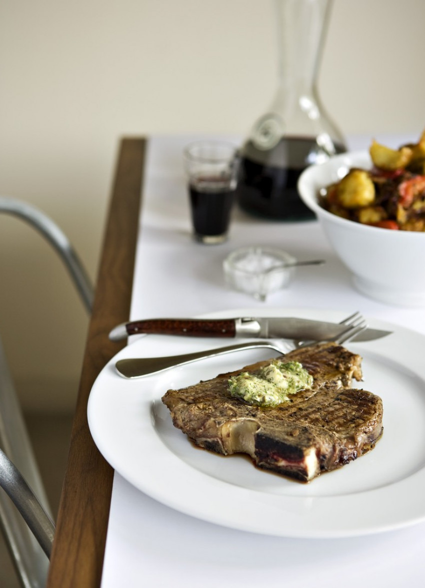 T-Bone Steaks with Caper, Anchovy and Parsley Butter