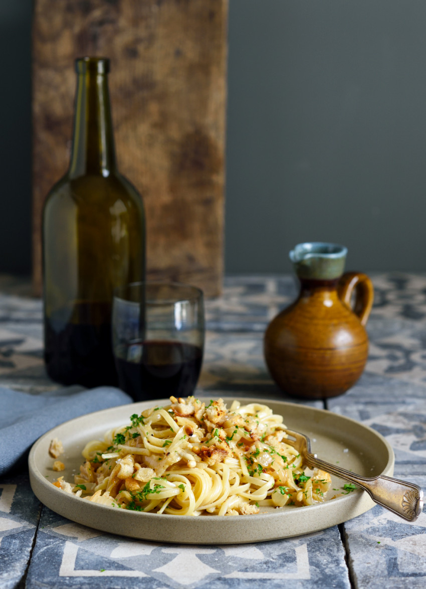 This dish is so deliciously creamy and decadent, elevated to dinner-party status with the addition of crunchy, garlicky pangrattato.