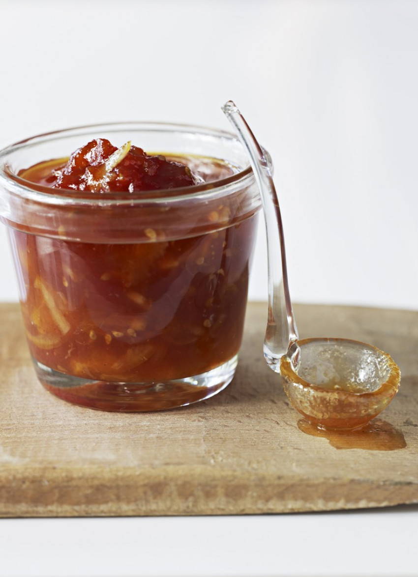 Stir in the lemon juice. Pour into hot, sterilized jars (see below) and seal. Refrigerate after opening. Makes about 4 cups