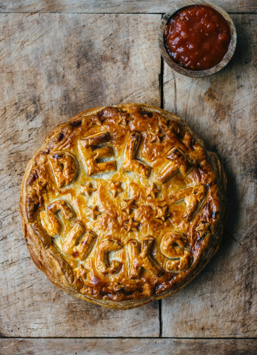 Bake the pie for about 45-50 minutes or until golden brown and luscious. Serve with a good dollop of tomato or fruit chutney and hold back for a few minutes before eating, as it will be wickedly hot inside.