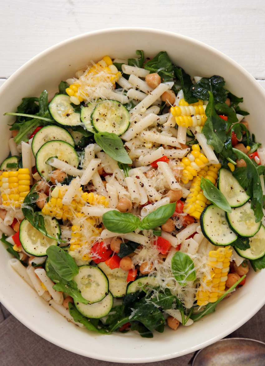 Chickpeas add a yummy source of vegetarian protein and the zucchini and rocket are only added at the last minute, to ensure they retain lots of crunch. Be generous with the parmesan.