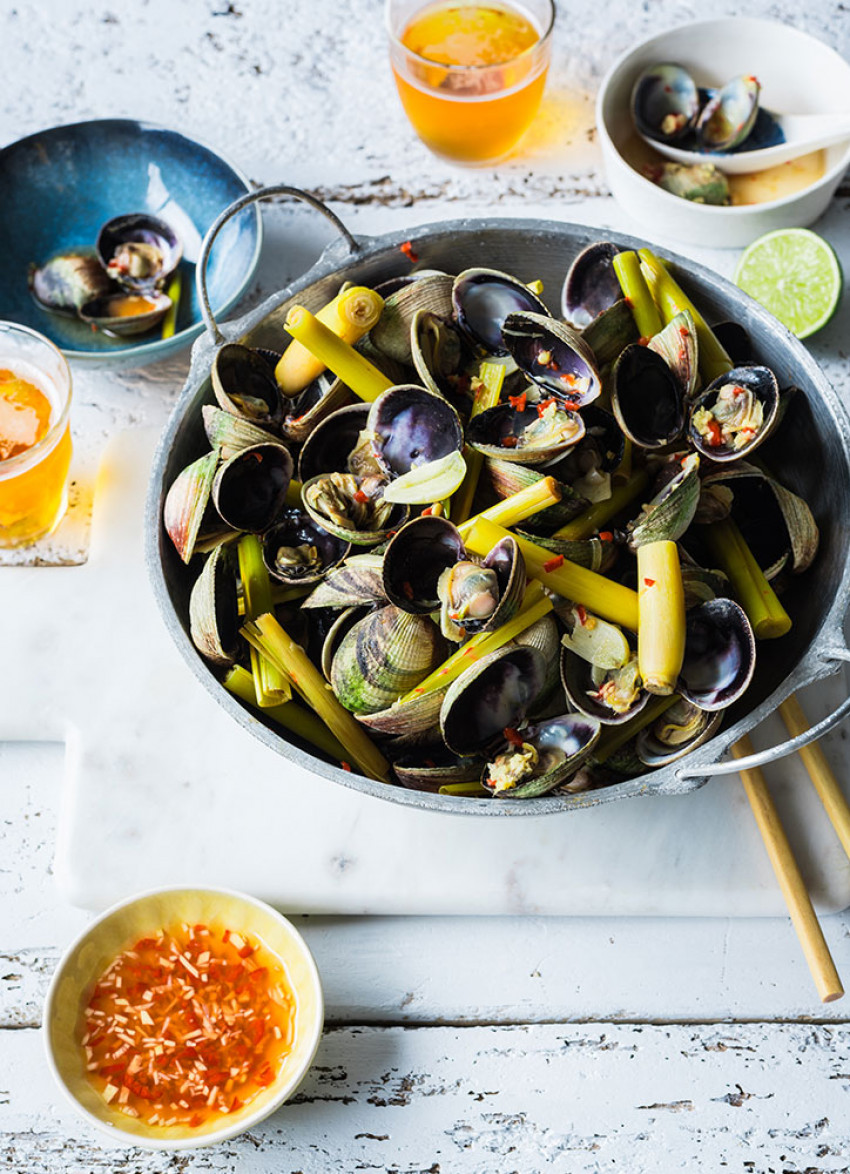 These fragrant and spicy clams are best served with a cold beer. Add extra chilli to the dipping sauce if you like it hot!