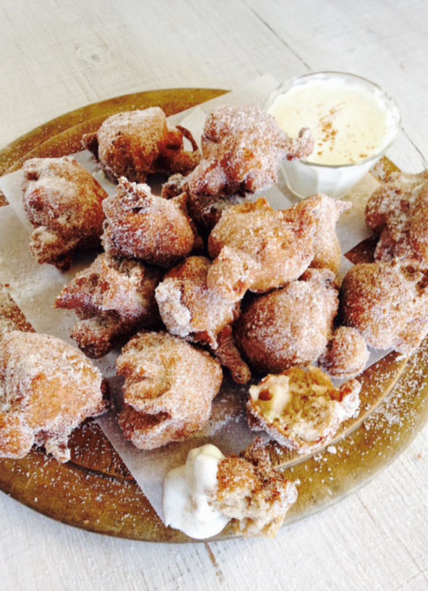 Carefully drop tablespoons of the batter into the pan and cook for about 2 minutes until a good golden colour and puffed, turning to cook on all sides. Don’t overcrowd the pan as the oil temperature will drop rapidly and the doughnuts will be heavy.