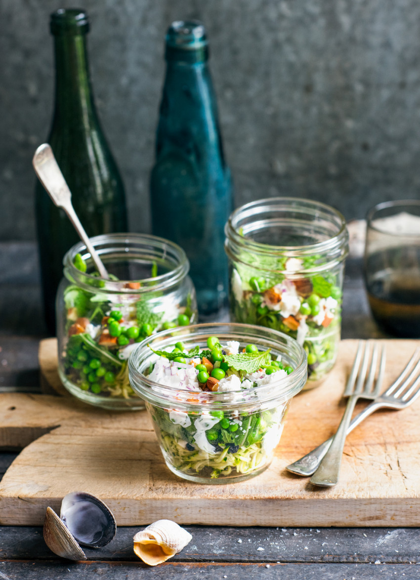 Zucchini, Pea and Feta Salad with Lemon Mayo