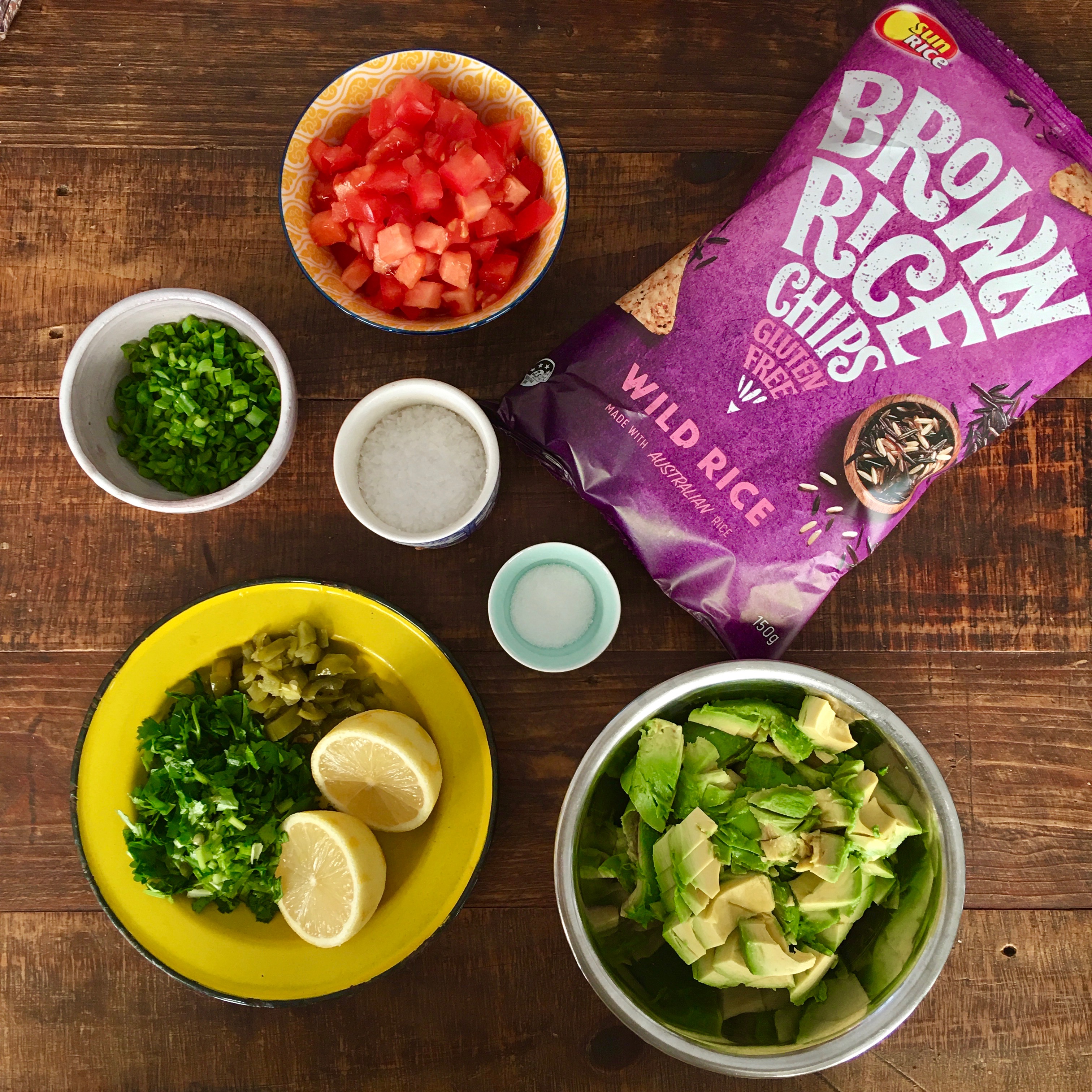 SunRice Wild Rice Brown Rice Chips go perfectly with tangy guacamole. As well as your classic guacamole staples of diced tomatoes, avocadoes, lemon juice and salt, add sliced spring onions, chopped pickled jalapenos, chopped coriander and sugar to taste. Mix all ingredients together and serve with SunRice Sea Salt Brown Rice Chips!
