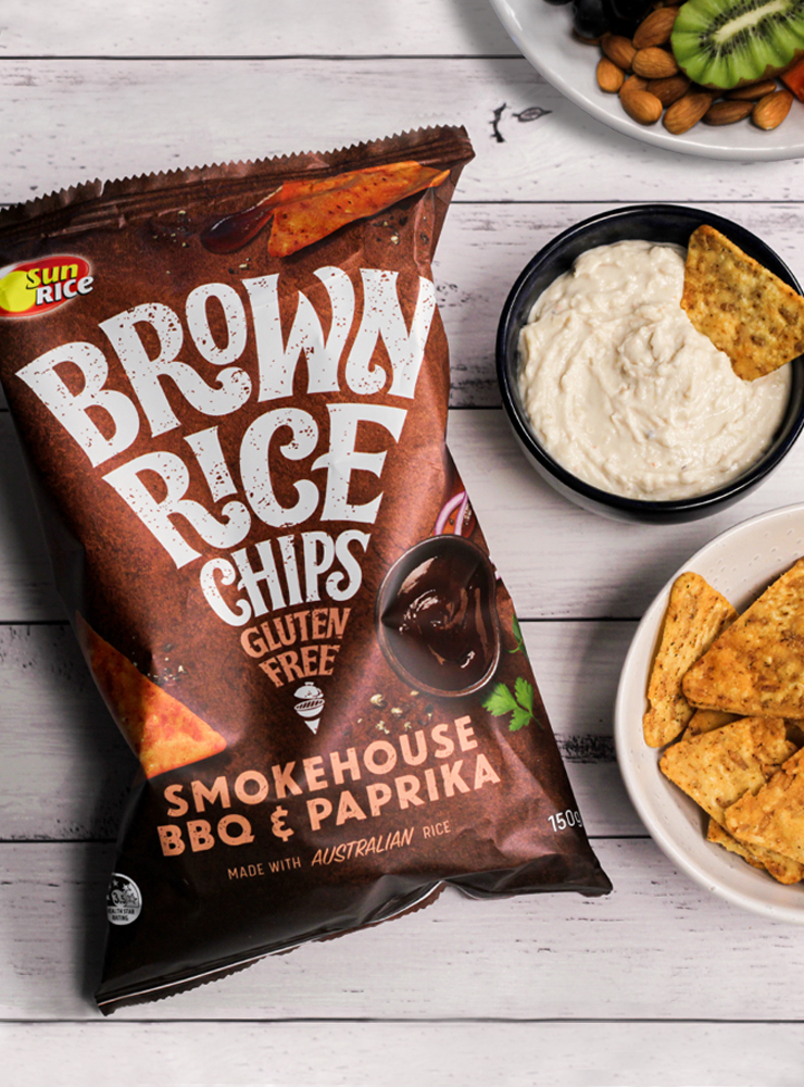 SunRice Brown Rice Chips are a delicious twist on traditional potato chips, packed full of crunch and flavour but made using Australian Rice. These bite-sized snacks are gluten free, contain no artificial colours or preservatives and come in three tasty flavours. We have collated our favourite dips for each of the SunRice Brown Rice Chip flavours – Sea Salt, Wild Rice and Smokehouse BBQ & Paprika.
