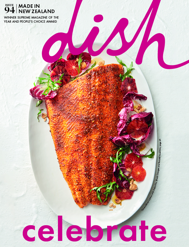 Find the recipes for the Farro, Herb, Asparagus and Date Salad and the Spice-Rubbed Salmon with Radicchio, Blood Oranges and Roasted Hazelnuts in issue 94 of dish magazine.